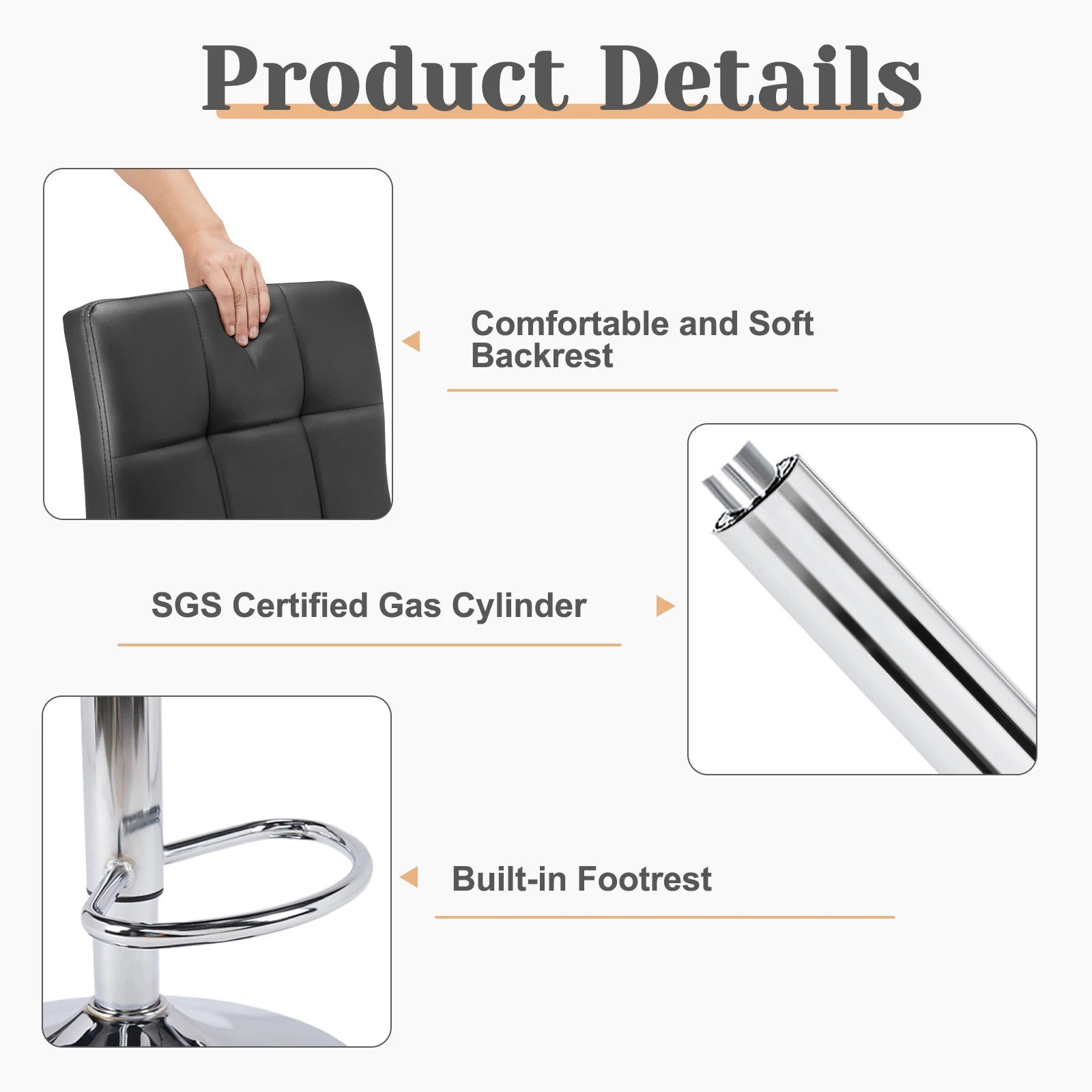 2 PU Leather Bar Stools Upholstered Counter Height