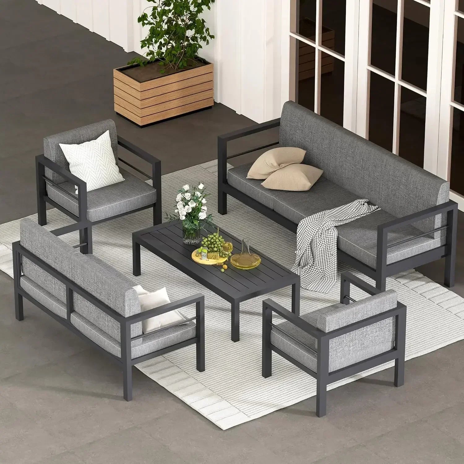 5 Piece Modern Aluminum Patio Furniture Set