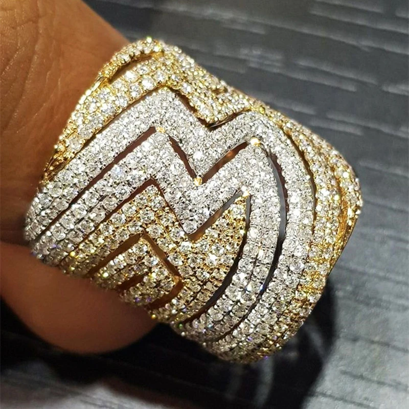 Hollow Geometric Luxury Wide Band Two Tone