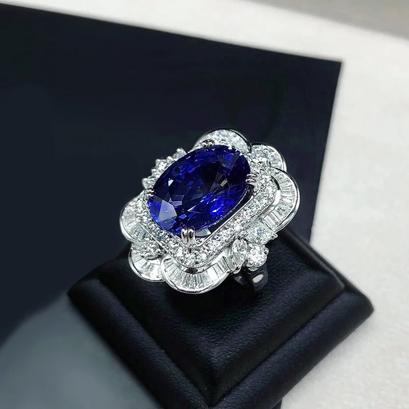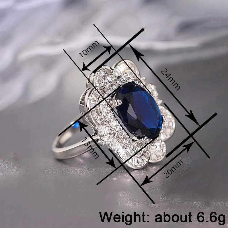 Luxury Women Rings with Oval Blue Flower Design